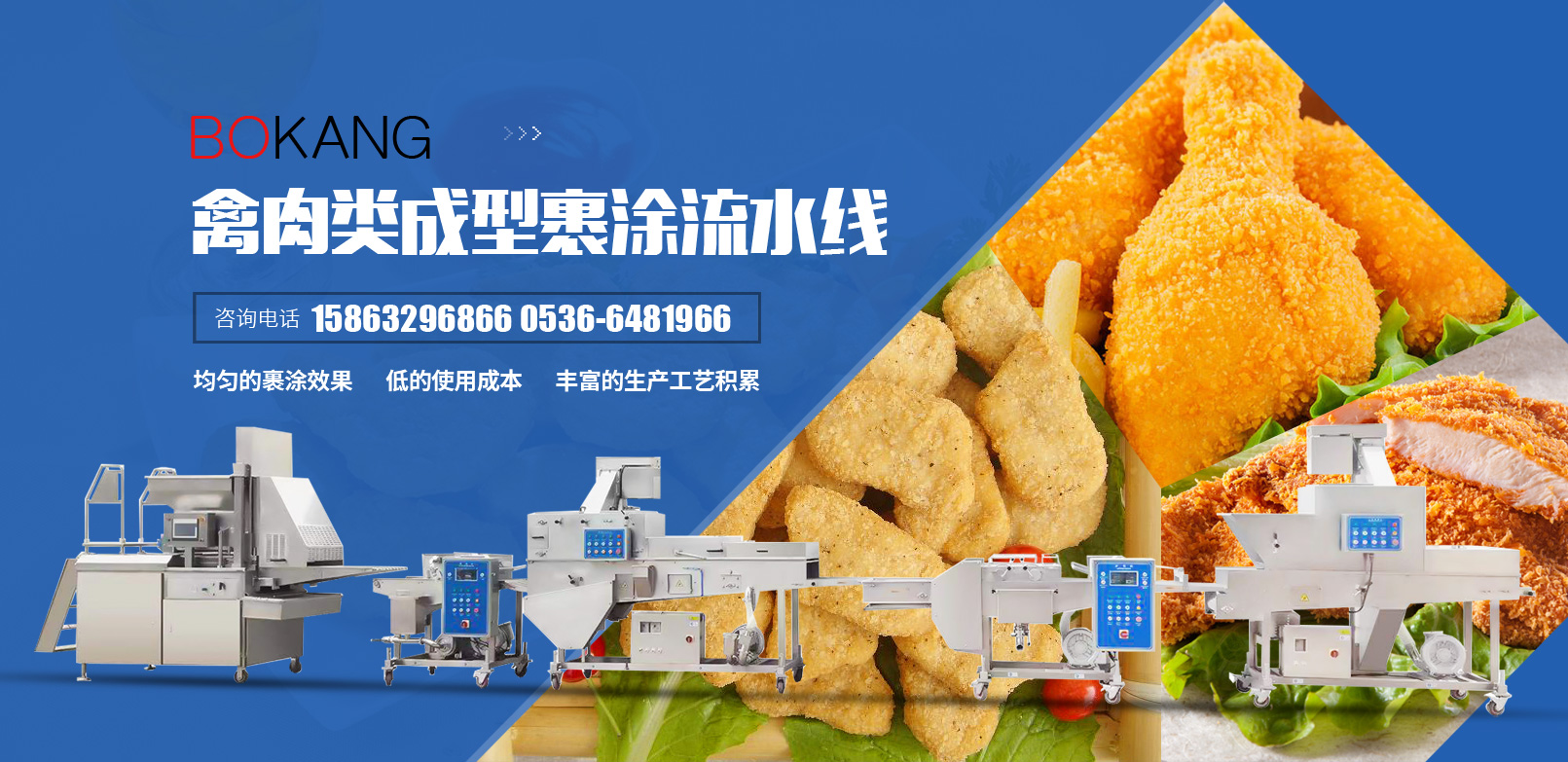 我們是一家生產(chǎn)預(yù)制調(diào)理類成型裹涂設(shè)備的廠家。為您提供產(chǎn)品裹涂解決方案。經(jīng)過多年的努力與革新,既可給食品工業(yè)的用戶提供生產(chǎn)線中的單臺設(shè)備,也可以提供多種設(shè)備組成的完整生產(chǎn)線。